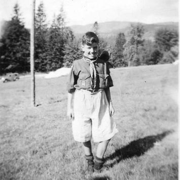 The Scouts presumably visited Inveraray several times and it is probably during one of those visits that Hamish Rankin met a girl called Yvonne who was on holiday in the area. Apparently, they hit it off and there is a photo of a rather small Hamish standing beside his girl friend dressed up to the nines, presumably in camp.